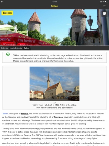 • GET RELIABLE INFO. All info comes from wikivoyage project, which is constantly updated by adventurous travelers and aspiring writers. Articles are vividly illustrated with more than 100 well chosen pictures and images.