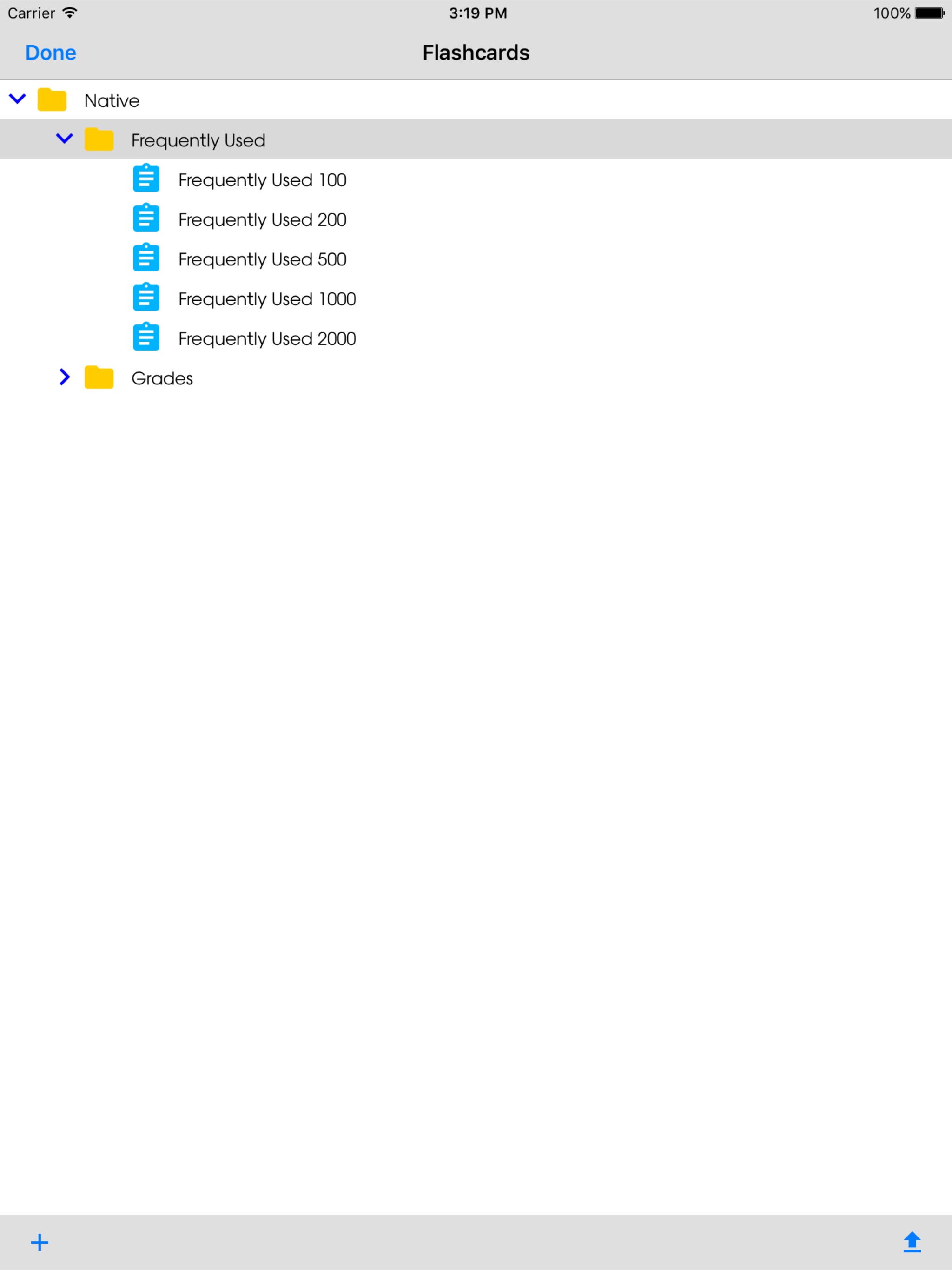 Create either flashcard or folder on Root via the + tool at the toolbar.