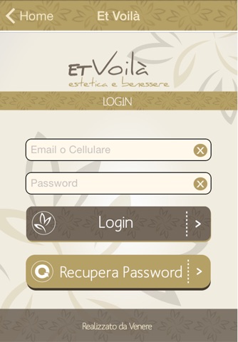 L app è stata pensata e progettata su misura per i clienti del centro estetico "Et Voilà". Si possono effettuare prenotazioni di trattamenti, consultare la propria fidelity card, visualizzare promozioni, creare una propria foto gallery, visualizzare la propria Scheda Morfologica, consultare i Pacchetti/Preventivi aperti con il centro, ricevere Notifiche Push dal Centro, etc.