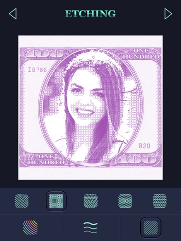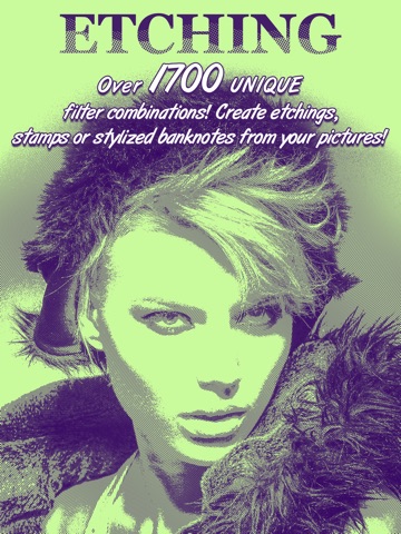 Create artistic photo filters and enjoy professional photo editing with amazing Sketch Photo Editor - Etching, best free photo editing app! Use three simple steps to generate over 1700 UNIQUE filters and effects! Make your pictures look like art etchings, stamps or banknotes! Put your favorite picture on a banknote or a post stamp. This is no ordinary sketch photo editor, sketching and drawing has never been easier! You have a simple enough selection of three buttons to choose an effect, a grid texture and grid line width, the combination of which can create more than 1700 high quality photo filters! This makes Sketch Photo Editor - Etching a professional photo editor with lots of beautiful effects frames and filters! These unique DIY photo filters will thrill you, youll quickly realize that they are nothing like youve ever seen! If youre wondering what is the best app for photo filters download Sketch Photo Editor - Etching and your question will be answered. Enjoy the best photo sketch app for mobile phones!