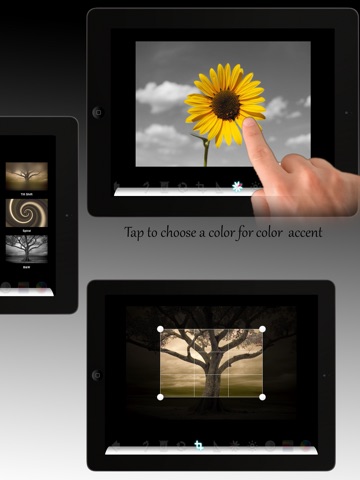 - Provides auto enhancement, contrast, brightness, saturation, sharpness adjustment, rotation, flip, crop tools and awesome tools like color accent and horizontal straighten tools.