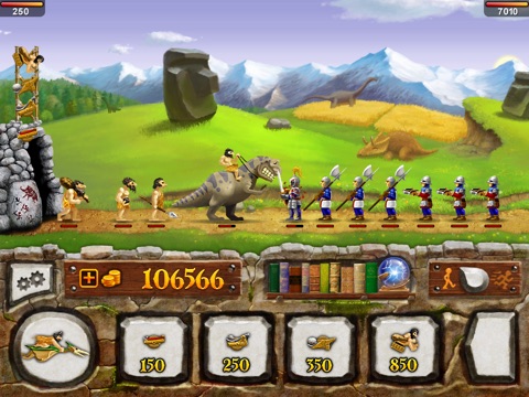 It’s a strategy game that you are going to fight against enemies invaders. You start in the Stone Age which you only have a base and limited money. You must think before spending money buying and upgrading buildings as well as turrets so they can both create more powerful units quickly and defend effectively.