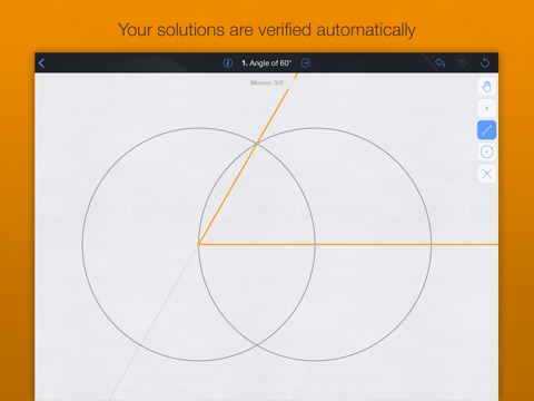 Demanding tasks await you in this game, as you create geometric figures using only a compass and straightedge. Each step tests your brain, requiring careful thought and preparation. Starting with the very basics and working your way up using the challenges you have solved already, you will learn to skillfully wield and construct bisectors, perpendicular lines, tangents, triangles from their constituent parts, inscribed and circumscribed circles, the golden section, and regular polygons. Every time you must complete a small wonder as you create a new object out of near-nothingness.
