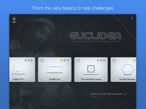 Euclidea is more than just a set of geometry challenges. The unyielding logic of geometry is incorporated into gameplay in a new and exciting way that becomes gradually more complex. And even though each challenge can be solved in an infinite number of ways, the game becomes a true puzzle when you try to find the shortest solutions involving the fewest actions. Begin playing and we think your road to geometry will be both pleasant and fascinating – the true royal road indeed! Q.E.D.