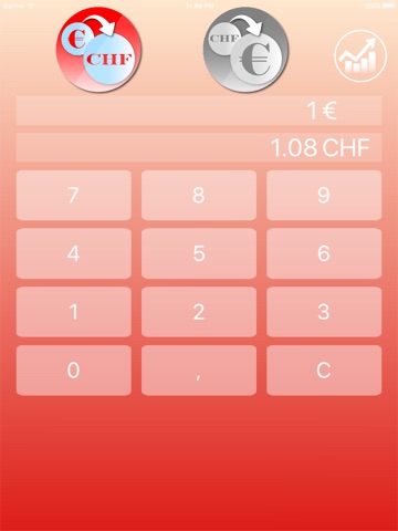 Direct Swiss franc - Euro conversion without menus or half-way steps.