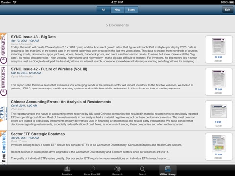The EuroIRP Research app provides the professional investor with a single point of access to a range of research and commentary from the leading Independent Research firms. Content within the App covers equities and fixed income markets and economies globally.