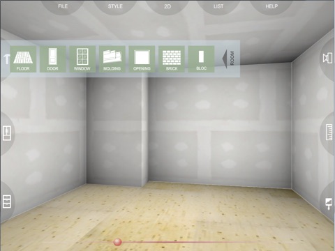 -Color wall, floor, window, door,brick,molding
