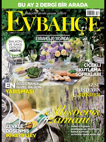 Türkiyenin ilk ve tek bahçe dergisi Evbahçe dergisinde her ay: Bahçe sorunlarına pratik çözümler, yaratıcı fikirler, en güzel bahçe, balkon ve teraslar. Türkiyenin en güzel ağaç, bitkileri mevsim çiçekleri… Meyvenizi sebzenizi kendiniz yetiştirin. En şık bahçe mobilyası ve aksesuarları… Arayın, bahçenizi, balkonunuzu biz güzelleştirelim hattı. Bahçe, balkon tasarımları… Bahçıvanın köşesi, bahçe doktoru sorularınızı yanıtlıyor.