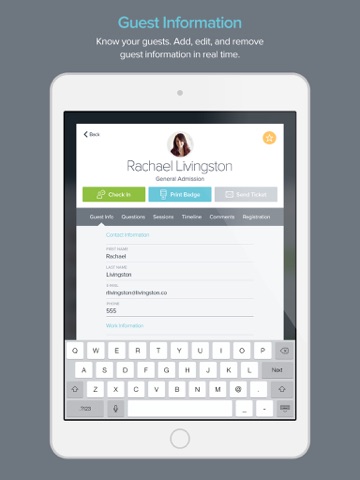 - Use branded kiosks for self-service check-in, selfie photos and editing their session schedule in real-time