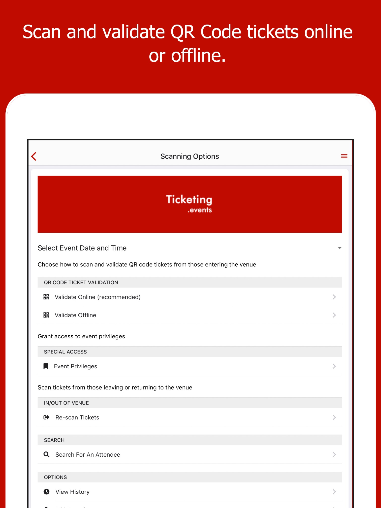 All the captured data and valid scans are made available on the ticketing.events dashboard.