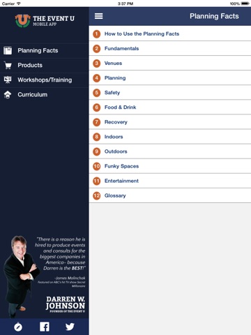 Whether a new wedding planner or a seasoned corporate event planner, The Event U Mobile app allows you have Real World usable event facts and info right at your finger tips. Benefit from having 32 years of event production experience in a quick, clear and detailed pocket guide at the tap of a finger.