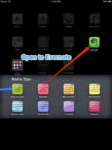 Opens Evernotes note When you touch the button.