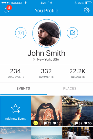 Ready to start? Add a photo to your profile, so that you see other users, and GO - create events and comments to them, meet new people, watch your friends on an interactive map, communicate in chat and share experiences with social networks.