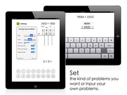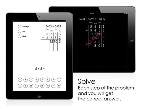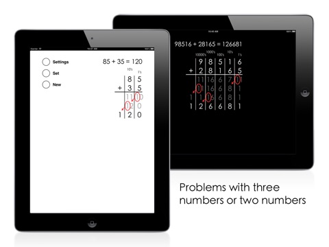 The numbers are aligned automatically so that you can concentrate on solving the operations for each column. Trading is animated step by step so you can see what happens.