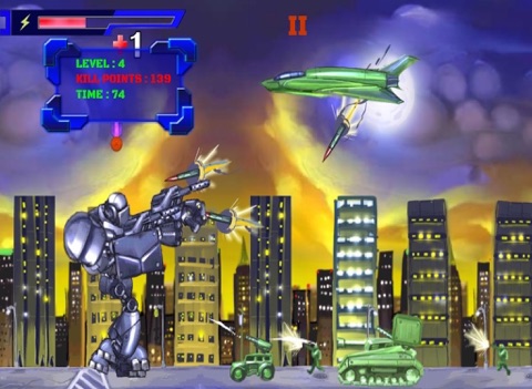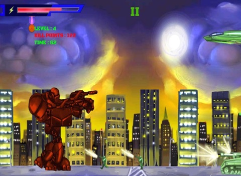 A 2D shooting game with Experience the action in stunning graphics! Witness the dazzling display of Robots unique skills!