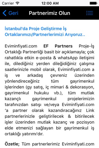 Türkiyenin ilk gayrimenkul e-ekspertiz portalı eviminfiyati.com ile; kentsel dönüşüm, gayrimenkul hukuku ve rantabl gayrimenkul proje çalışmalarımız için fırsat proje & yatırım bilgilendirme bildirimleri alabilir, şirketimizle whatsapp ofisinizden sektörel iş ortağı partnerimiz olarak çalışarak kazanç ve getiri elde edebilirsiniz.