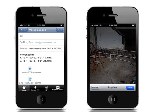 Not sure how this relates to the paranormal field theres no paranormal aspect to the app as I can see it The app just puts a bunch of tools, that the iphone already has, under 1 app. The app gives you easy acces to the note pas, voice recorder, camera and it allow you to email the recordings Maybe missed it but there nothing special here