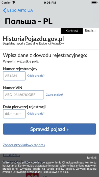 С помощью приложения можно быстро проверить статус автомобиля на европейской регистрации.