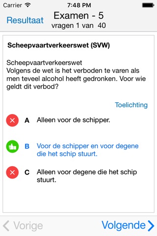 De examentraining sluit perfect aan op elk cursusboek en is ook goed te gebruiken naast bijvoorbeeld een (online) cursus. Met de app kunt u oefenen op elk moment dat het u uitkomt. Thuis op de bank, als u wacht op de bus of natuurlijk ook aan boord. De examentraining gebruikt geen internet of wifi en bevat een groot aantal oefenvragen. De app gebruikt de toetsmatrijs van de Vamex om onbeperkt oefenexamens samen te stellen. Hoe meer u oefent, hoe beter u de leerstof onthoudt en het geleerde ook kunt toepassen. Gemaakte examens kunt u bewaren en bekijken om te zien welke vragen u verkeerd had. In één blik ziet u welke onderwerpen u nog beter moet bestuderen.
