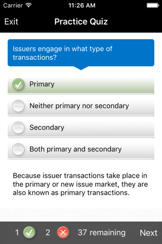 The practice quizzes and/or exams in this app will help you prepare for the securities examination and are representative of the types of questions you may encounter on those examinations. However, completion of a full course of study is necessary to adequately prepare for securities examinations. Courses are available at www.ExamFX.com.