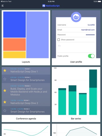 This app features some of the native and customizable UI controls for building cross-platform mobile apps using the NativeScript framework. Browse the examples to get first-hand experience with the framework. A Source code preview is available for every example.