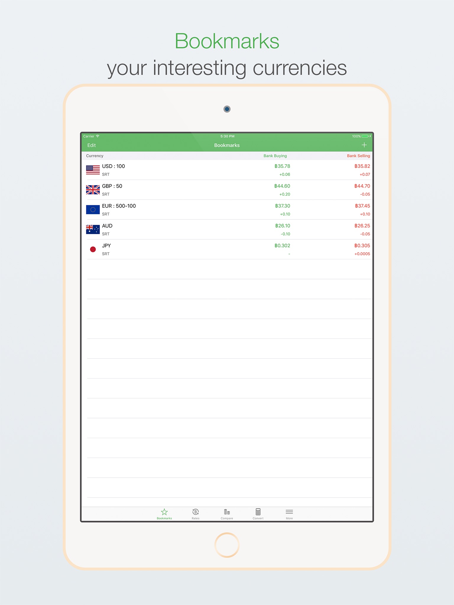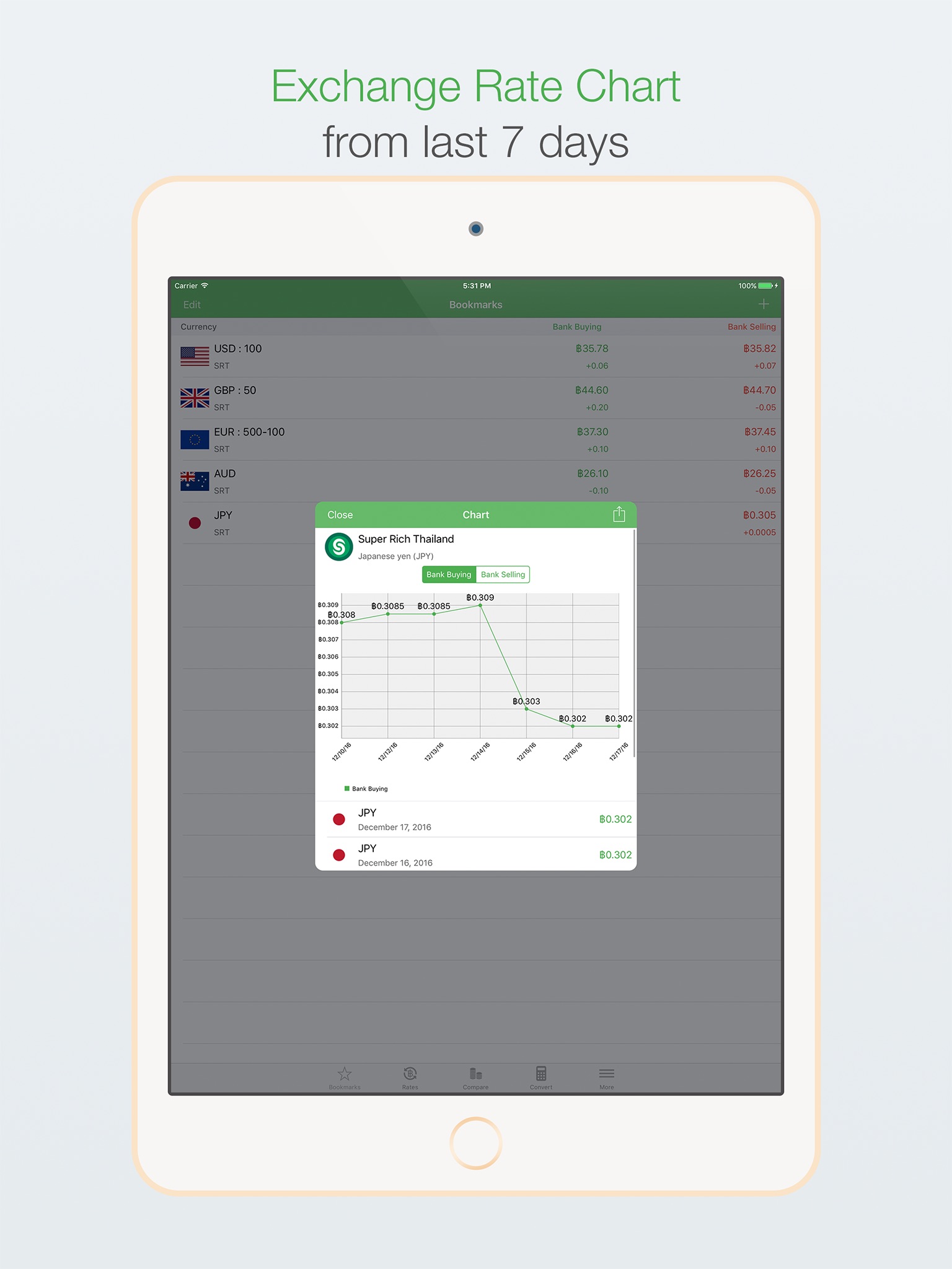 • Display buying/selling rates Thai Baht with 41 currencies