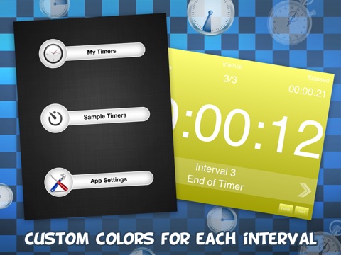 * Color: Every interval will change the color of the screen to let you know and to keep you motivated!