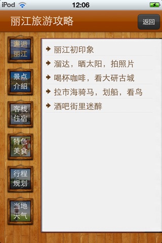 此应用主要介绍了北京、南京、丽江、厦门四个城市的旅游景点、美食、住宿客栈以及当地实时的天气情况,可以给用户出游提供很好的帮助。