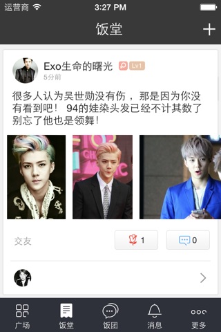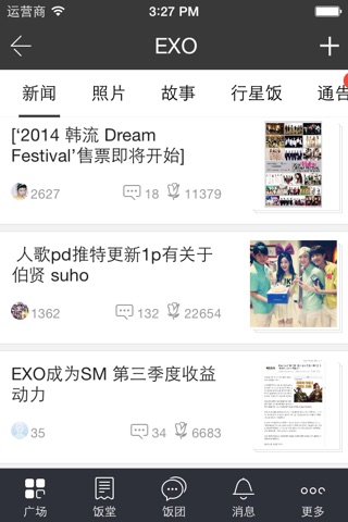 -饭团 和同样喜欢EXO的粉丝抱成团,大家一起聊天,打榜,CP,应援,接机