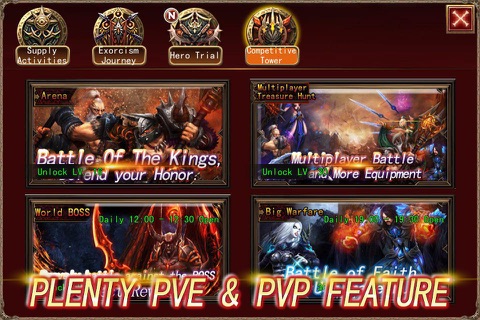 - Multi-Player Mode Kamu bisa bermain dan berinteraksi dengan player lain, berpartisipasi dalam Guild Wars, mengalahkan Boss yang kuat di World Boss, PVP dengan player-player lain di Big Warfare atau melewati dungeon bersama-sama.