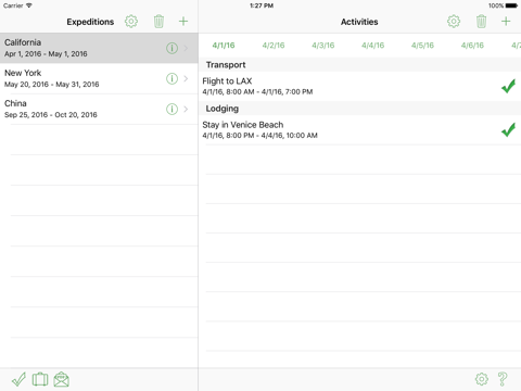 You can create itinerary for your expedition and track activities. You can also create a to-do list and packing list for each trip.
