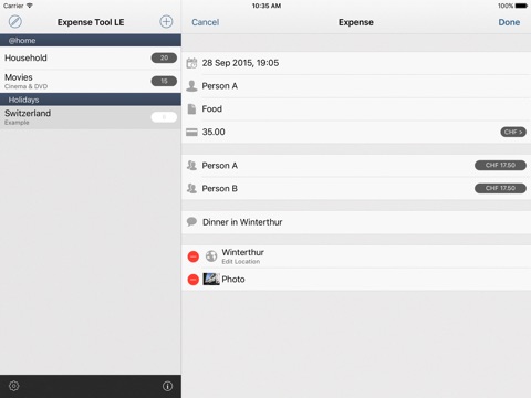 Très bonne prise en main. Facile, fonctionnelle et surtout simple (ce nest pas une usine à gaz noyée dans les options lors des saisies). Excellente application pour une utilisation à deux, à part égales. Sinon, il manque quelques options nécessaires (on ne paye pas forcément pour tous, ni à part égales...). Regardez du côté de ExSplitr dans ce cas...