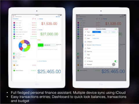 •Easy to use Expense / Income / Budge Item Entry Screens with on the fly Calculations.