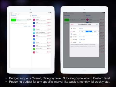 •Recurring budget for any specific interval like weekly, monthly, bi-weekly etc.,
