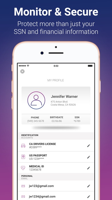 Your premium membership includes comprehensive active monitoring† of your identity. The moment we detect a threat, we’ll alert you with a push notification**. This includes: