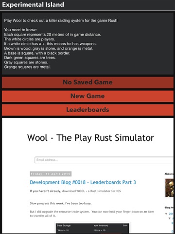 Play a simulation of Rust! This app is for avid Rust players, especially those interested in shaping the future of Rusts development. Experimental Island is host to the Rust experiments created by Adam Thompson.