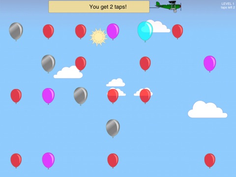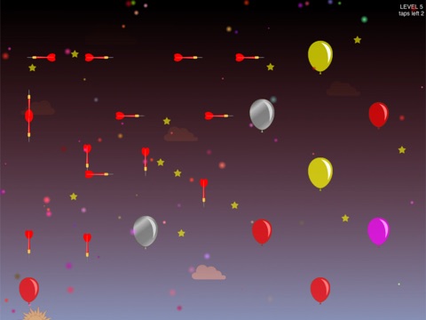 Touch a balloon to make it explode. An exploding balloon will send out darts that will cause other balloons to explode. This starts a chain reaction! The goal is to explode all the balloons in a limited numbed of touches. Can you clear all the puzzles?