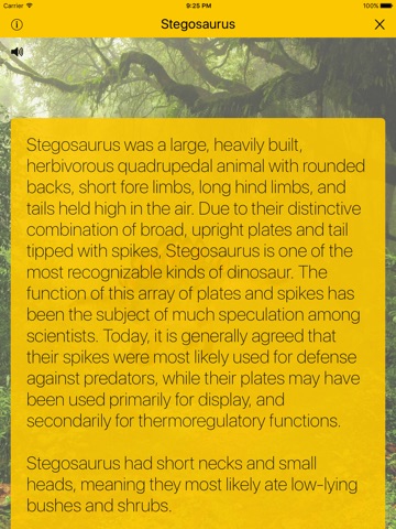- Educational at-a-glance info about each dinosaur and its diet