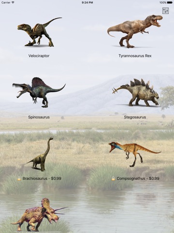 - High-detail 3D models of each dinosaur