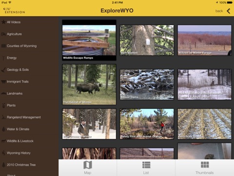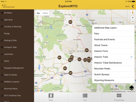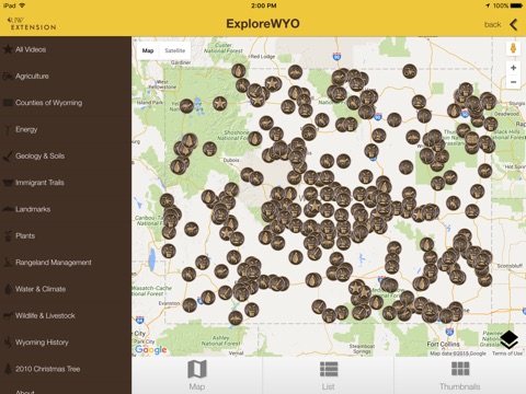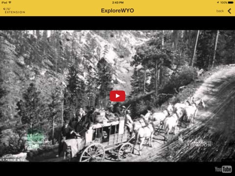 The ExploreWYO app was created by the University of Wyoming Extension to help more effectively distribute our Exploring the Nature of Wyoming (ENOW) video series. ENOW is a weekly series of 90-second videos exploring Wyoming’s natural history, agriculture, geology, cultural history, geography, and energy production. In over 350 videos filmed throughout the state, ExploreWYO and ENOW introduce you to the wonder and diversity of Wyoming’s landscape and culture. Whether you’re a traveler passing through our state or have the privilege of living “Forever West,” you’ll discover little-known facts and out-of-the way treasures throughout Wyoming.