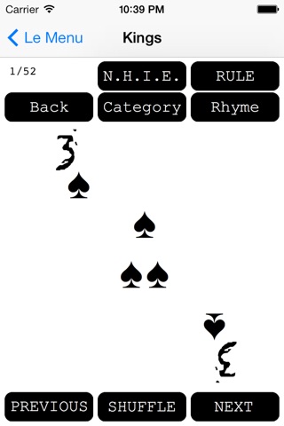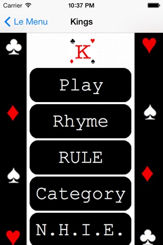 Kings, Kings Cup, Ring Of Fire...call it what you want. Everyones been to a party and had a hankering to play this game and not had a deck handy. If you can relate then this app is indispensable. Not only does the app contain a quick reference to the rules and a deck for easy gameplay, there are also over 50 suggestions for Never Have I Ever, Rule, Category, and Rhymes, for those short on ideas. Party on, my friends.