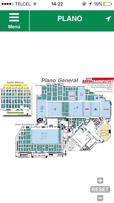 Aplicación interactiva para conocer la ubicación de todos los expositores. Más de 400 empresas reunidas exponiendo sus productos y haciendo negocios.
