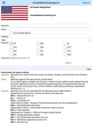 This app may be used as an aid to industry in conducting electronic screens of potential parties to regulated transactions. In the event that a company, entity or person on the list appears to match a party potentially involved in your export transaction, additional due diligence should be conducted before proceeding. There may be a strict export prohibition, requirement for seeking a license application, evaluation of the end-use or user to ensure it does not result in an activity prohibited by any U.S. export regulations, or other restriction.