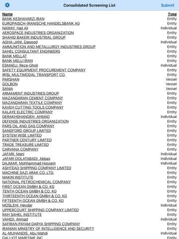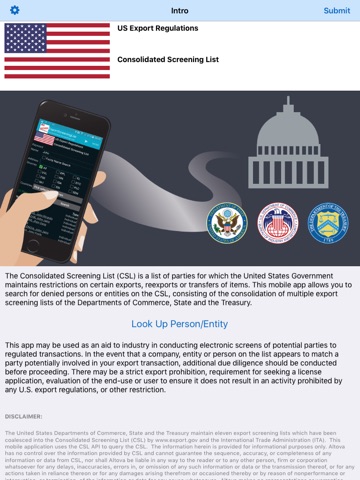 The Consolidated Screening List (CSL) is a list of parties for which the United States Government maintains restrictions on certain exports, reexports or transfers of items. This mobile app allows you to search for denied persons or entities on the CSL, consisting of the consolidation of multiple export screening lists of the Departments of Commerce, State and the Treasury.