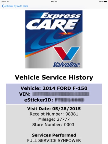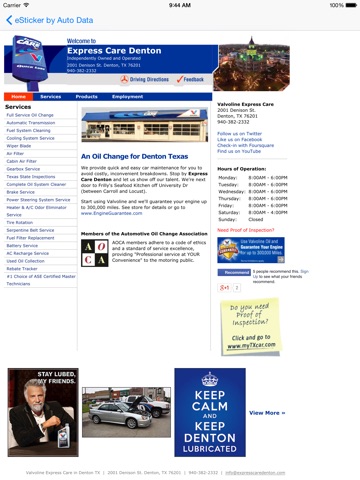 The eSticker app also lets you view a history of all services performed on your vehicles by Express Care Denton at any time, so youll always know which services have been performed on each of your vehicles, and when they were last performed.