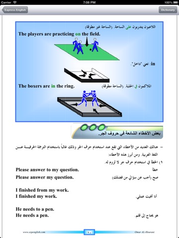 Express English is good application containing chapters for learning English Grammar for Arabs, it teaches English Grammar perfectly in Arabic.