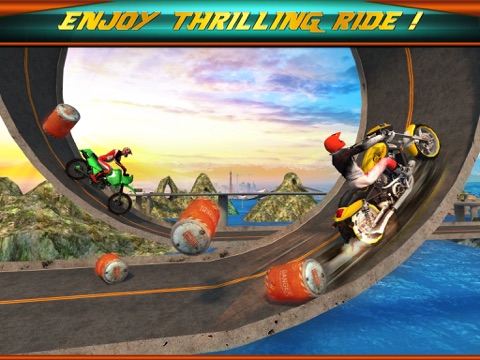 Step up and display your courage through twists and turns, all while wearing your favorite bike gear. Dodge risky obstacles amid dangerous hills through an amazing, realistic landscape. Fly through the obstacles with nitro boost. The thrill is addicting!