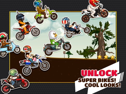 Choose your favorite bike, from a collection of scooters, dirt bikes, cruisers and speed bikes! Customize your ride with paint jobs and use all-new power-ups to achieve the best scores!