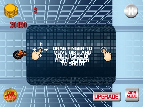 """Exciting Futuristic Super Bike Shooting Game - Control your Riderless Intelligent Future Bikes and shoot your way to Freedom. Blast away villainous Monster Tanks, Boulders and Beam Missiles through a Matrix Landscape!