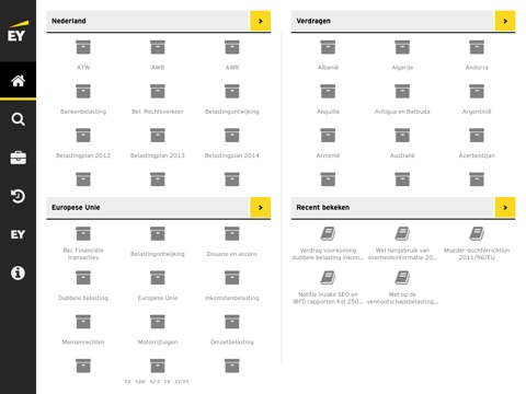 De applicatie EY TaxLaw NL biedt een handzame set met actuele Nederlandse en Europese fiscale regelgeving, alsmede Nederlandse bilaterale belastingverdragen. De teksten zijn voor de overzichtelijkheid verdeeld in drie secties.